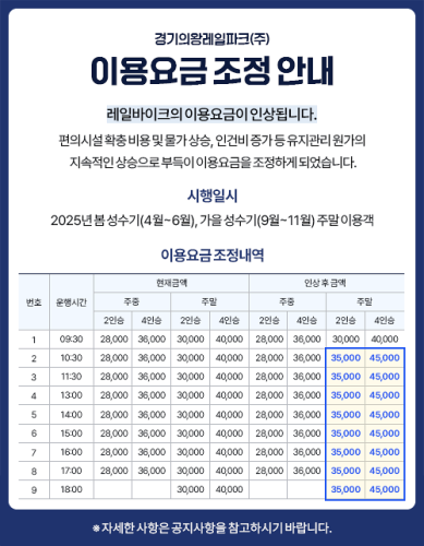 성수기 요금 인상과 관련하여 홈페이지 개편 중입니다.